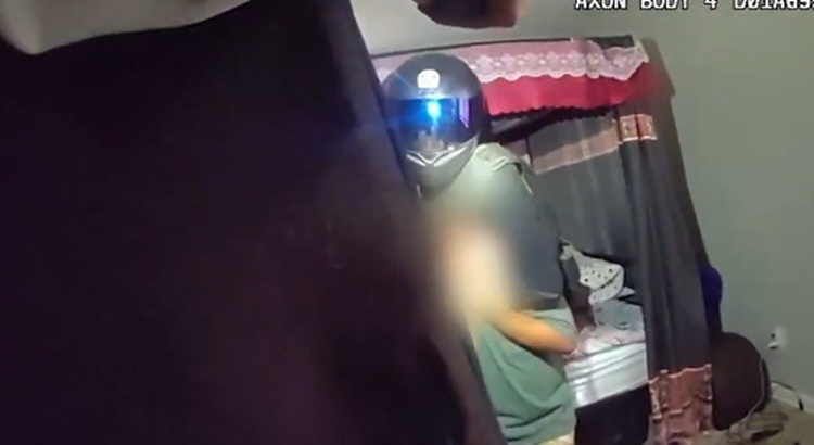 Кога постариот брат не ги послушал наредбите, полицаецот ја скршил вратата, а камерата го снимила Комазо, кој носел шлем, како го држи својот помлад.