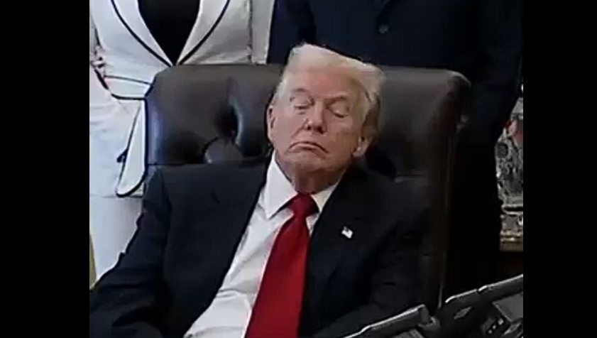Фотографии од американскиот претседател Доналд Трамп со затворени очи, снимени за време на официјален настан во Овалнaта соба, предизвикаа лавина реакции на социјалните мрежи викендов, јави Си-Ен-Ен.