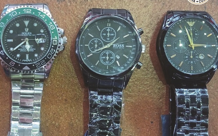 Дури 1.158 парчиња часовници со потпис на заштитени трговски марки „Ролекс”, „Бос”, „Армани” и „Томи Хилфигер” се запленети при контрола на стока пријавена за транзит на граничен премин Богородица – соопшти Царината.