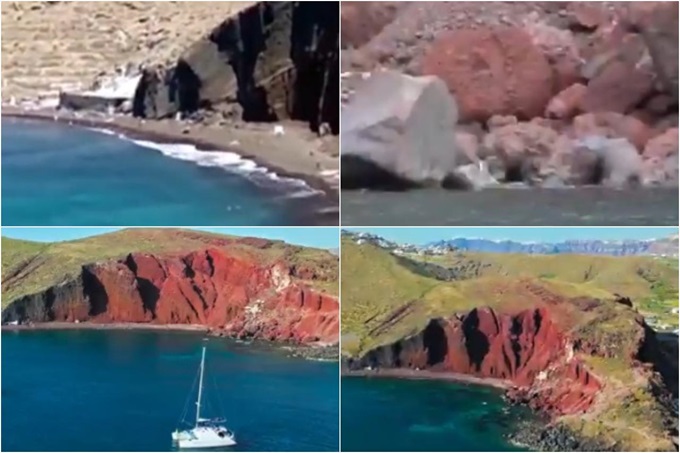 📽️ ЗАПОЧНА УЖАСОТ ОД КОЈ СИТЕ СТРАВУВАА! Познатата „Црвена плажа“ на Санторини повеќе не постои по синоќешниот земјотрес