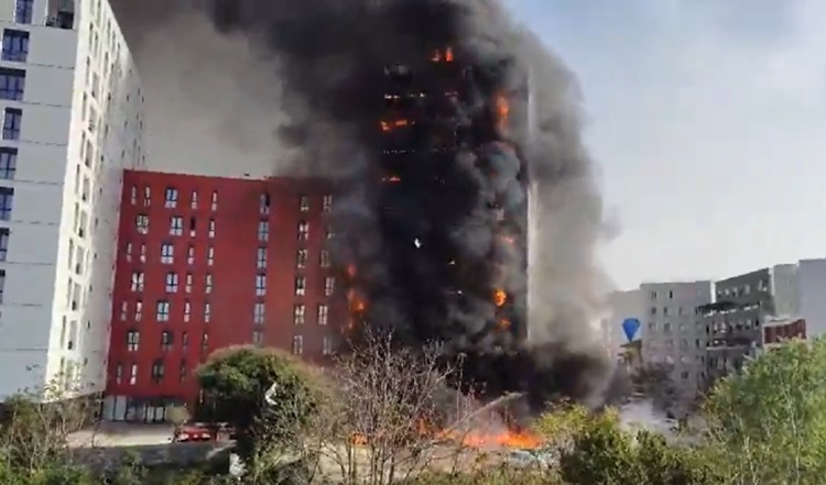 Пожарот ја уништил целата фасада на новоизградената зграда. Густ црн чад можел да се види од сите делови на градот.