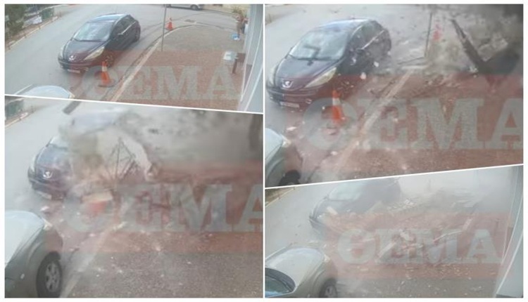Морничавата сцена се случи вчера попладне во градот Лаврио, кога балконот падна од двокатна зграда во која се наоѓа популарна аптека.
